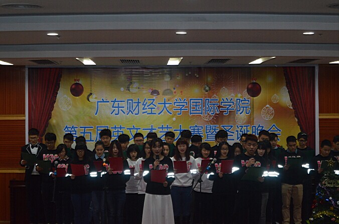 12月28日19:00,taptap点点体育第五届英文才艺大赛暨圣诞晚会在三水校区学术报告厅顺利举行。学院党总支书记谭玉祥,国际本、预科中心王强主任,班主任、学生家长以及全体学生出席了本次英文才艺大赛。