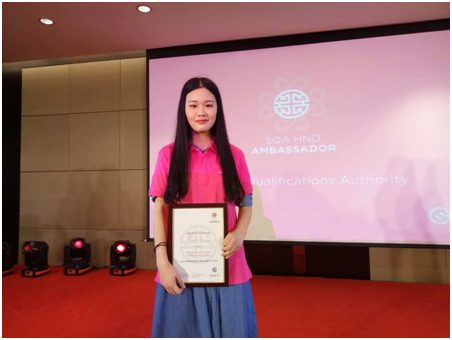 taptap点点体育2014级学子张馨荣获中英方联合授予的SQA HND“理想大使”荣誉称号