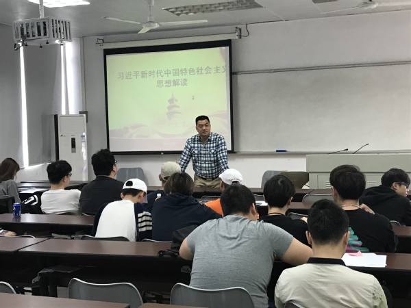 329日下午56节,林莉院长在第二综合楼501课室以“习近平新时代中国特色社会主义思想解读”为主题为17级国际146位学生讲授思想政治理论课。当天下午78节,谭玉祥书记在第二综合楼501课室为17级国际242名学生进行主题为“习近平新时代中国特色社会主义思想解读”的思政课讲授。