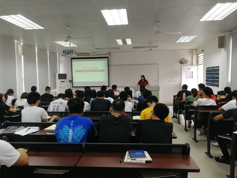 10月9号下午4时,林莉院长在第二综合楼404教室为2018级1、2班全体同学进行了一场主题讲座。林院长以大量翔实的数据,讲述了广东的经济发展状况,并详细解读了习近平总书记近年来对广东省提出的“三个定位,两个率先”、“一个走在前列,交出两份答卷”等重要指示批示精神。同学们备受鼓舞,表示要全面学习“四个走在全国前列”,积极参与到中国特色社会主义新时代建设的浪潮之中去。