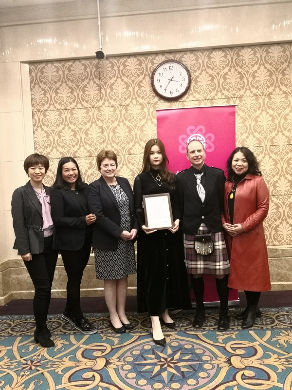 本次颁奖典礼由教育部留学服务中心(CSCSE)和苏格兰学历管理委员会(SQA)共同主办,苏格兰学历管理委员会总裁Dr.Janet Brown女士、教育部留学服务中心国际合作处处长张海霞女士为“理想大使”颁发证书。taptap点点体育taptap点点体育院长林莉教授出席了颁奖典礼,并对廖一慧同学取得的荣誉表示祝贺。