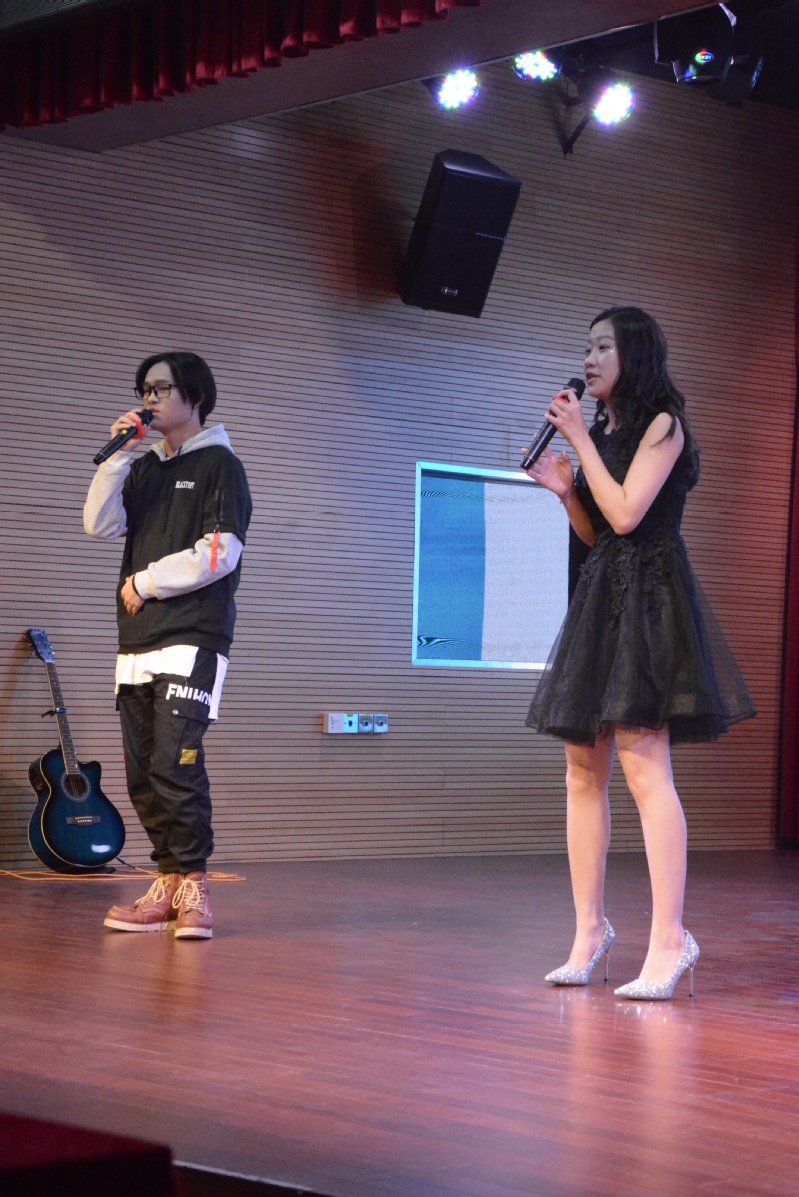 17、18级的学长学姐们也不甘示弱,17级李苗苗的《Rolling in the Deep》让人心潮澎湃;17级邓雅丹同学钢琴弹奏《土耳其进行曲》向大家展示了扎实的功底,让观众听得如痴如醉……18级会计班孙圣媛诗朗诵《My way》铿锵有力地表达了年轻人对美好事物的向往与追求;18级5班湛永炎同学以极具表演力和慷慨激昂的经典独唱——《大师作品》将晚会推向了一波小高潮!18级商务1班吴炫霆模仿说唱天王Eminem的《Lose Yourself》持续长达4分半钟的rap(说唱)技惊全场,将全场气氛引爆!
