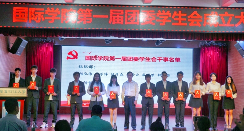 taptap点点体育谭玉祥书记,学院团委书记廖颖毅老师,国际本预科中心学工办主任辛建芝老师、曾昭洪老师,国际课程教育中心学工办主任江佳妮老师,taptap点点体育全体学生工作老师,全体团委学生会干部及2020级全体团员等参加大会。