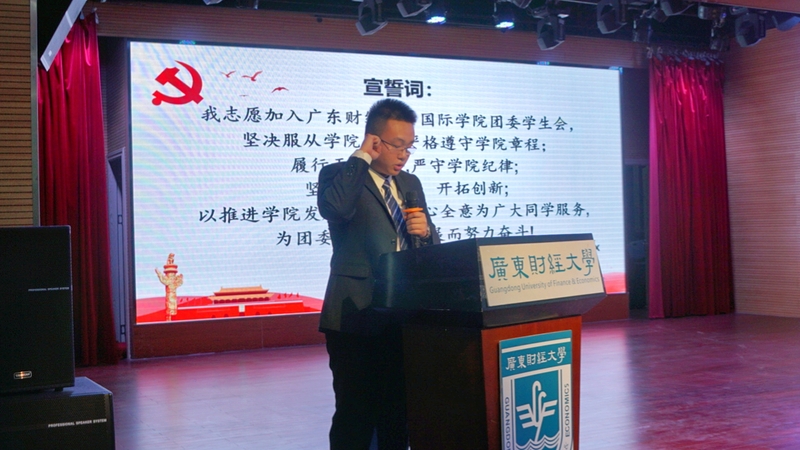 ⑦团委学生会主席潘雪龙同学上台带领全体团委成员宣誓