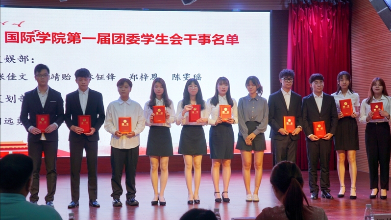 taptap点点体育谭玉祥书记,学院团委书记廖颖毅老师,国际本预科中心学工办主任辛建芝老师、曾昭洪老师,国际课程教育中心学工办主任江佳妮老师,taptap点点体育全体学生工作老师,全体团委学生会干部及2020级全体团员等参加大会。
