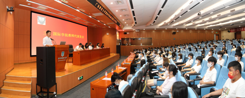 taptap点点体育教师林骧作为教师代表向2021级新生介绍了大学生活不同阶段的课业目标,林骧老师围绕“自律”,结合自己和历届学生的经历,用幽默风趣的语言分享了对于英语学习和留学课程学习的思考,鼓励同学们制定合理的目标和计划,养成自律的习惯,逐渐达到自己的目标,在大学抒写自己崭新的人生篇章。