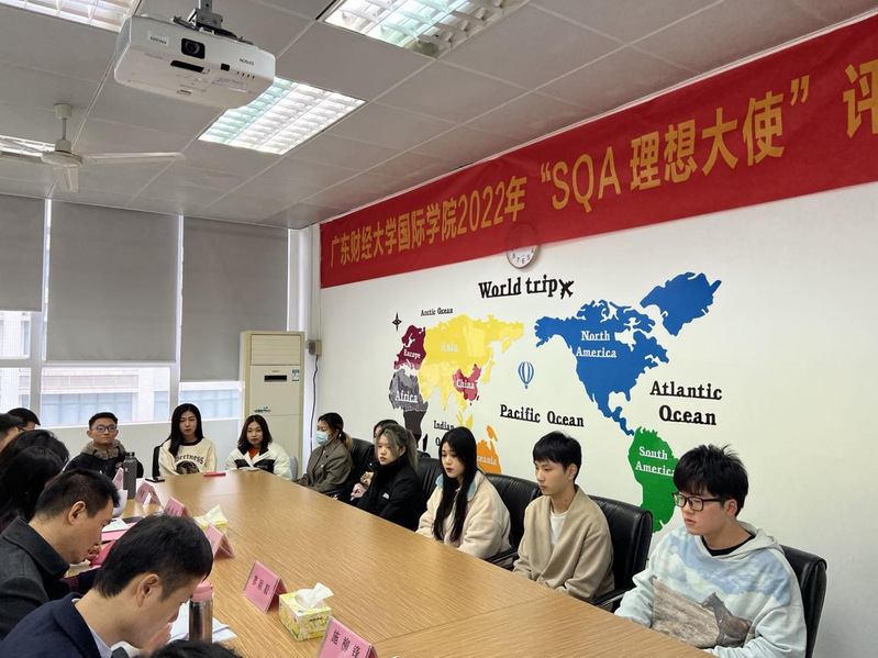 本次评选活动在2021年12月初启动,活动主旨意在选拔优秀学生,弘扬榜样作用,并推选出本届SQA“理想大使”候选人。经过学生自荐、班级推选、学院组织评审等程序,对参评候选人的雅思成绩、在校期间学习、生活等多维度全方面进行严格审查遴选,12名候选人脱颖而出,进入最终的评选。