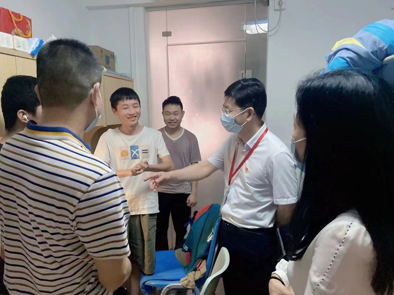 罗贤甲副书记察看了学生的住宿条件和生活环境,悉心询问、全心关怀同学们在校园疫情防控期间的学习生活状况和思想状态,听取了同学们对学校线上教学、管理、服务、食堂就餐等方面的意见和建议。看到同学们线上学习、日常生活有条不紊,状态良好,积极向上,对同学们积极配合学校疫情防控工作,服从封闭管理等情况,给予了充分肯定。希望同学们学习不停歇、防控不松懈,遵守校纪校规和防控工作要求,增强自我管理意识和能力,坚定信心,群策群力,共克时艰。