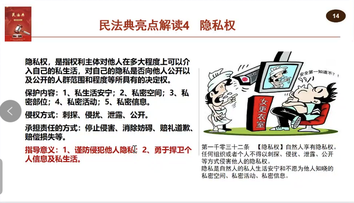 此次活动还邀请到了广东浩淼律师事务所执行主任,佛山市律师协会青年工作委员会副主任,佛山市律师协会党政机关社区法律顾问委员会委员曾小珠律师为青少年学生讲解民法典。曾律师在课堂上引入了多个案例,通过分析案例向学生讲解法律知识。