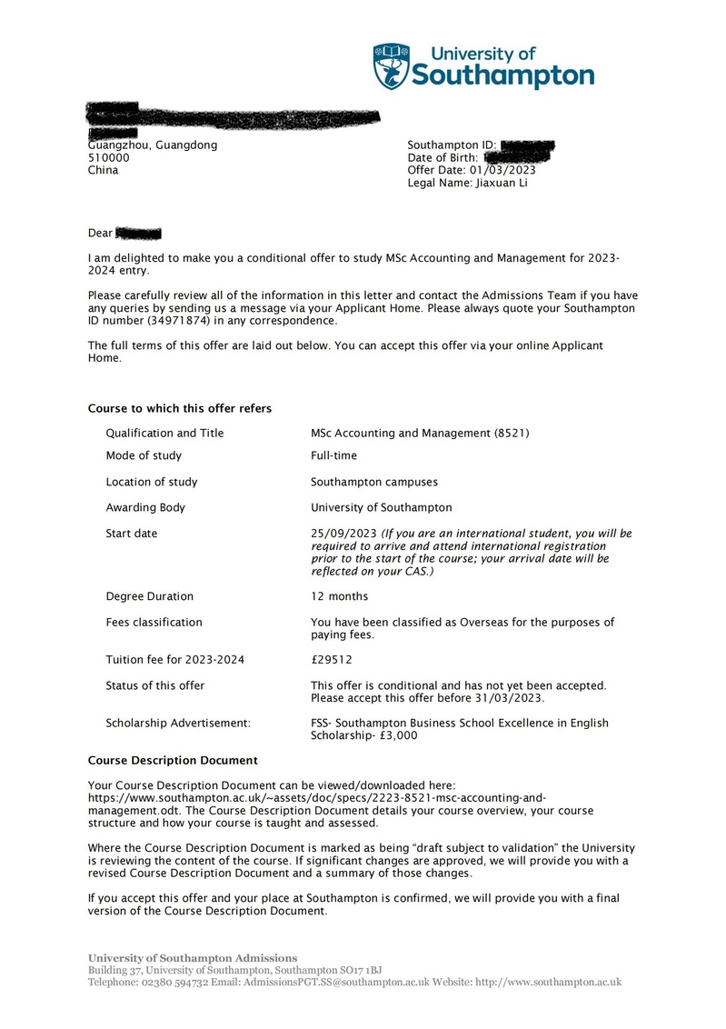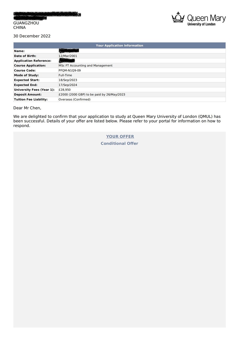 热烈祝贺我院SQA AD项目同学获英国布里斯托大学、南安普顿大学、利兹大学、谢菲尔德大学、纽卡斯尔大学、伦敦玛丽女王大学、埃克塞特大学、兰卡斯特大学、约克大学等海外名校硕士录取。