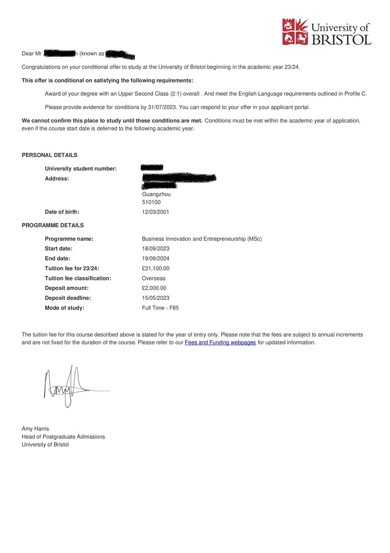热烈祝贺我院SQA AD项目同学获英国布里斯托大学、南安普顿大学、利兹大学、谢菲尔德大学、纽卡斯尔大学、伦敦玛丽女王大学、埃克塞特大学、兰卡斯特大学、约克大学等海外名校硕士录取。