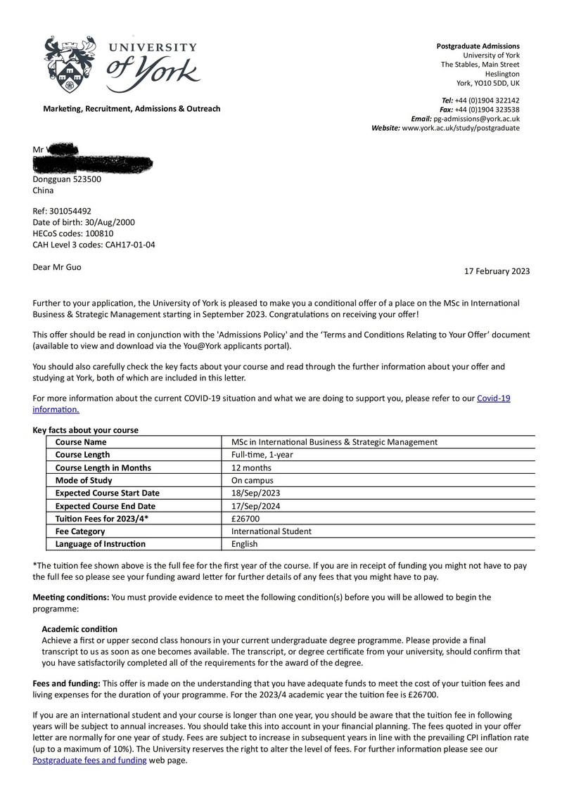 热烈祝贺我院SQA AD项目同学获英国布里斯托大学、南安普顿大学、利兹大学、谢菲尔德大学、纽卡斯尔大学、伦敦玛丽女王大学、埃克塞特大学、兰卡斯特大学、约克大学等海外名校硕士录取。