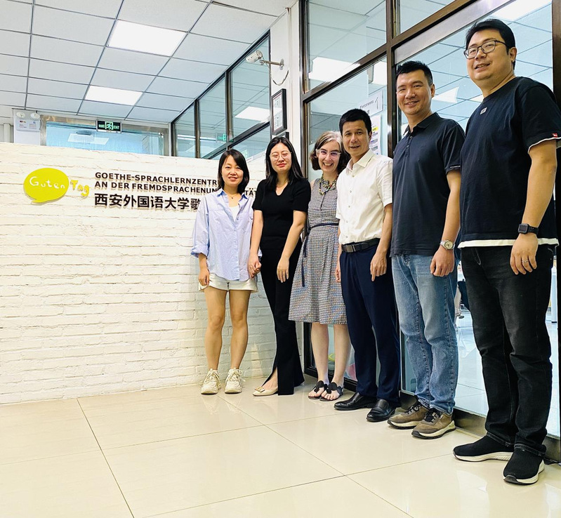 2023年6月14日下午,何雄卫一行访问了西安歌德语言中心,与该中心德方主任Carola Kruger以及中方工作人员就德语课程设置、教师团队建设、招生报名服务、考试安排以及质量评估等情况进行了深入交流。