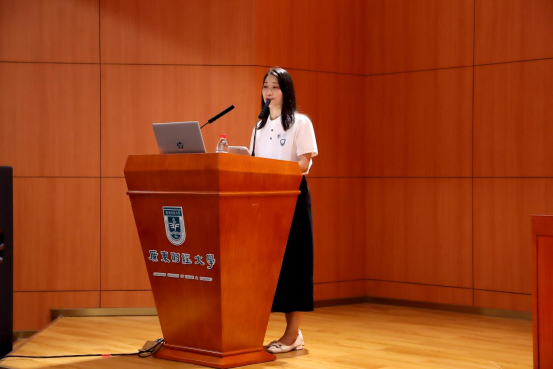 学院教师代表杨晓銮发言,她围绕理想信念、独立思考和行动力、与人相处、养成良好的作息时间和生活习惯等方面,引用了尼采的诗“去往天空和远方,否则,他如何变成星辰向我闪光”,向同学们表达了她的殷殷期望。深耕理想、奋进自律;珍惜光阴、健康生活,希望同学们成为一个大智大勇、敢于担当、有境界、有社会责任感的人。