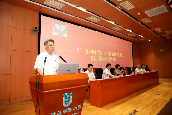 首先,副校长陈国栋致辞。他向全体新生表示了衷心的祝贺和热烈的欢迎,并向新生们介绍了学校及学院的基本情况。陈国栋对同学们提出三点希望和要求,一要坚定理想信念,心怀“国之大者”;二要坚持自信自强,弘扬守正创新;三要提升学习能力,拓宽国际视野。希望新生打造自信的品格,不负韶华、不负时代,坚定不移地扎根铸魂、启真崇善、开源奋进,在人生赛道上跑出这一代青年的最好成绩。