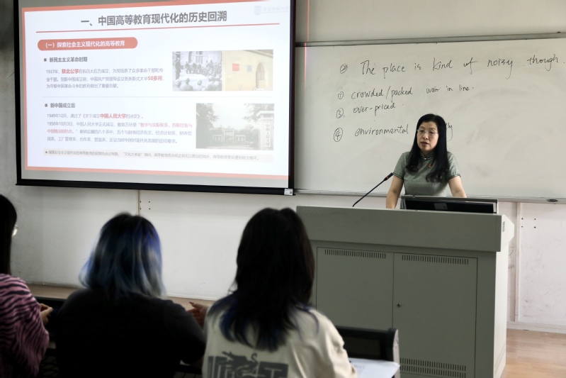 庞革英院长回溯了中国高等教育现代化的历史。在探索阶段,党设立各类新式大学,为现代化的高等教育的初期发展奠定了基础。改革开放后提出我国教育发展总目标和行动纲领是教育要面向现代化、面向世界、面向未来,此时我国高等教育真正步入现代化轨道。国家通过先后实施“211工程”“985工程”“优势学科创新平台”和“特色重点学科项目”等重点项目,有效推动了我国高等教育整体水平的提升。