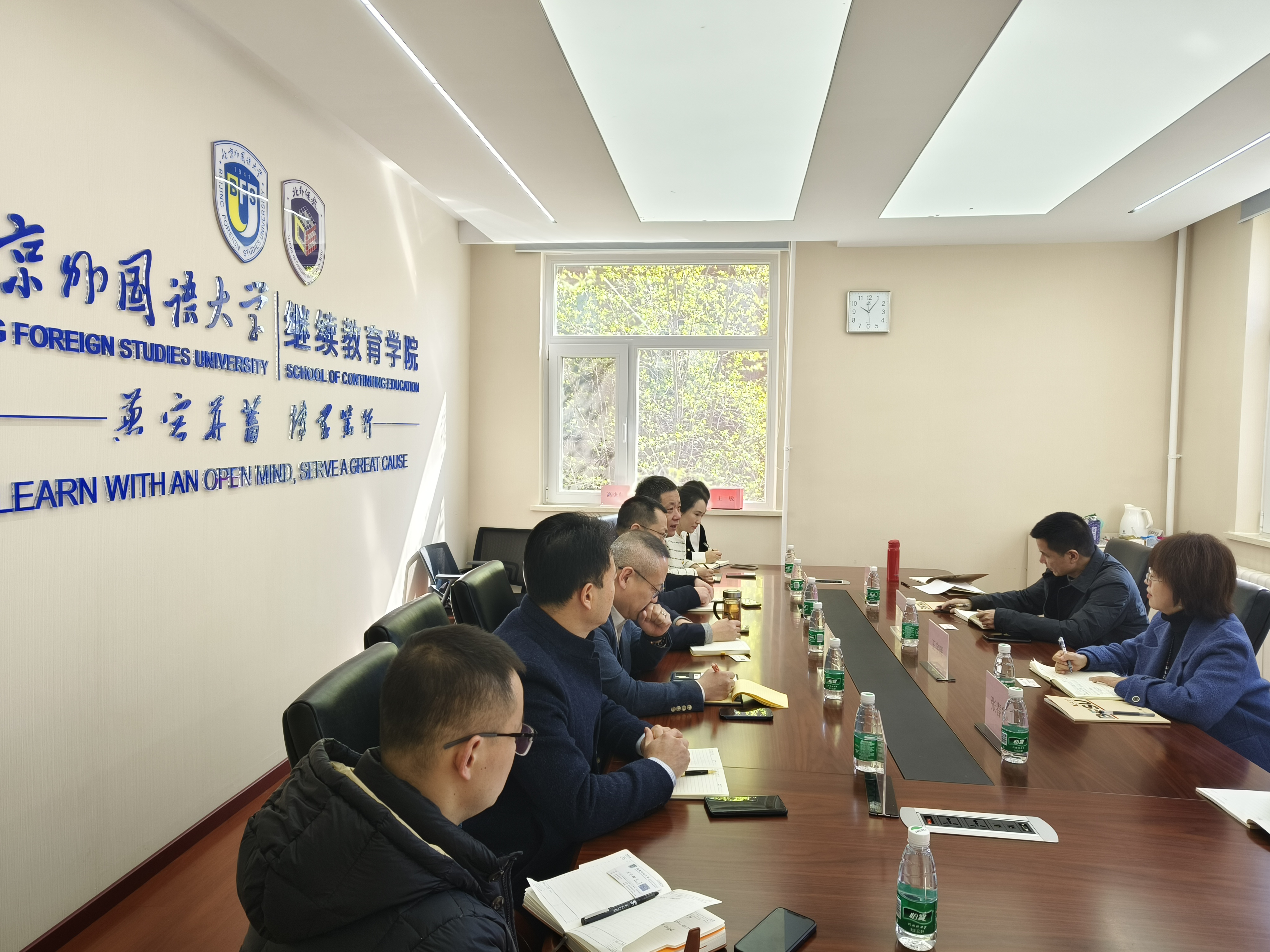 3月28日上午,王宇晖一行访问北京外国语大学。北京外国语大学继续教育学院相关领导介绍了该院在国际教育项目招生、教学管理、学生管理以及学生出国升学等方面的经验体会。双方就国际教育项目办学模式、师资队伍建设等情况作了深入交流。
