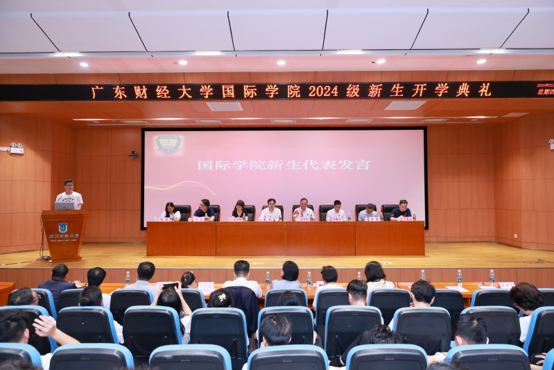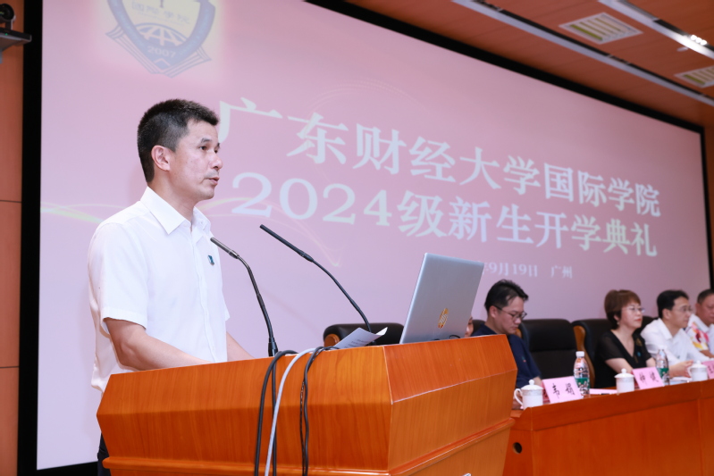 首先,副校长张凯致辞。他向全体新生表示了衷心的祝贺和热烈欢迎,并向新生介绍了学校的基本情况。张凯副校长指出党的二十届三中全会胜利召开,吹响了进一步全面深化改革、推进中国式现代化的“进军号”,学校事业发展进入了新的历史阶段,全体师生要坚定地履行新的历史使命,展现“广财人”的责任担当。他向同学们提出三点希望,一要厚植家国情怀,心怀“国之大者”;二要奋力挺膺担当,争做“时代新人”;三要拓宽国际视野,持续贡献青春力量。不负韶华、不负时代,书写精彩的人生篇章。
