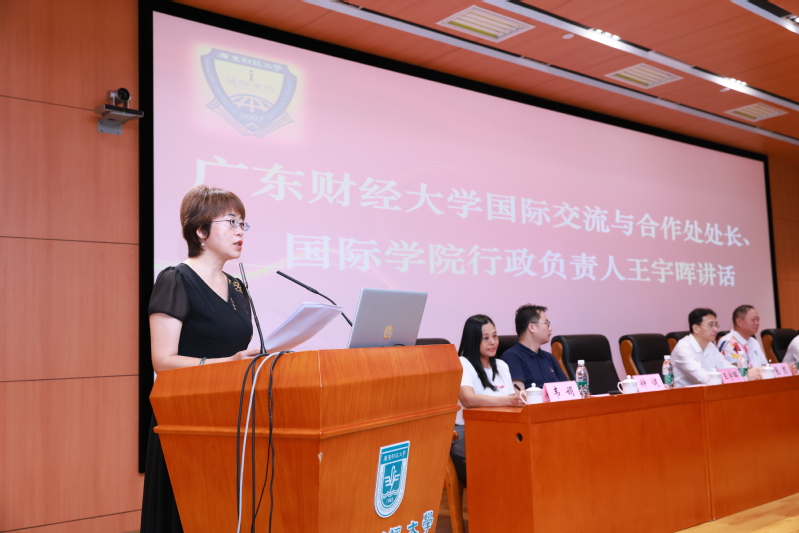 国际交流与合作处处长、taptap点点体育行政负责人王宇晖总结讲话。王宇晖处长鼓励同学们涵养广财学子的精气神,掌握融会贯通的学习能力;立志博学笃行,争做复合型国际化专业人才;培养独立自主的能力,形成独立健全人格,用青春和奋斗汇聚起时代发展的磅礴力量,踔厉奋发、勇毅前行。