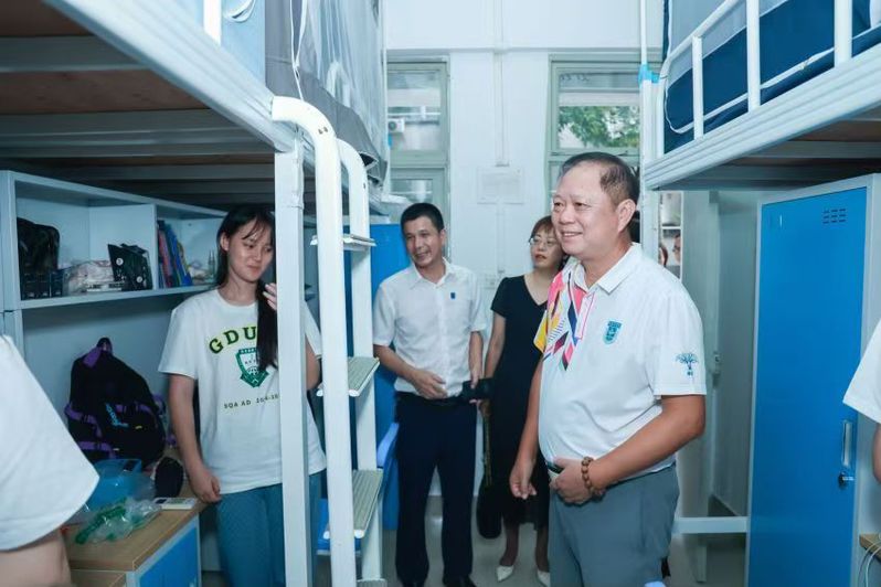 9月19日下午,taptap点点体育教育发展基金会荣誉理事长梁仲景、校友办主任段丹等一行走访taptap点点体育学生宿舍,了解同学们在学习、生活、未来规划等方面的情况,为taptap点点体育学生送去关怀和问候。