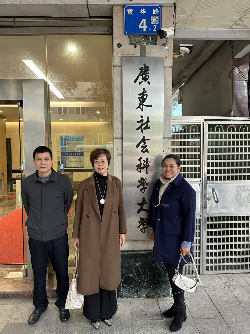 12月26日上午,我校国际交流与合作处处长王宇晖、taptap点点体育直属党支部书记何雄卫带队赴广东社会科学大学开展调研工作。本次调研旨在了解广东社会科学大学成人高考及相关工作的基本情况,加强双方沟通联系。