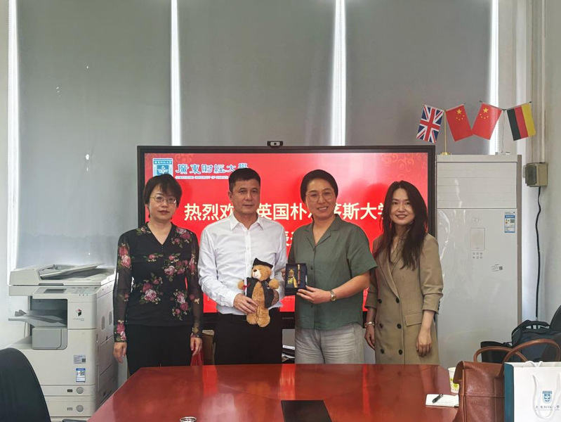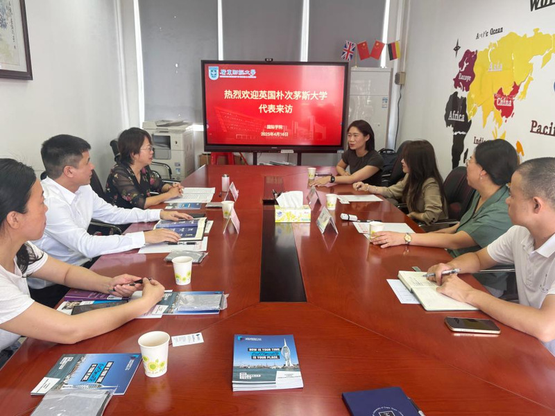 王宇晖对英国朴次茅斯大学一行来访表示热烈欢迎,并介绍了我校发展历程、办学特色以及与其他高校的合作情况。徐岑介绍了英国朴次茅斯大学的教育体系、专业特色和发展愿景,并表示愿与我校加强紧密合作,助力中英教育高质量发展。随后,与会人员就3+1项目、学生交流互换等事宜进行了深入探讨。