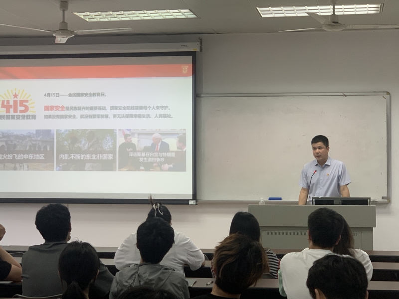 424日下午,为深入学习贯彻党的二十大精神,增强青年学子的国家安全意识,taptap点点体育直属党支部书记何雄卫以“统筹高质量发展与高水平安全”为主题,为全院45名学生代表上了一堂生动深刻的思政课。