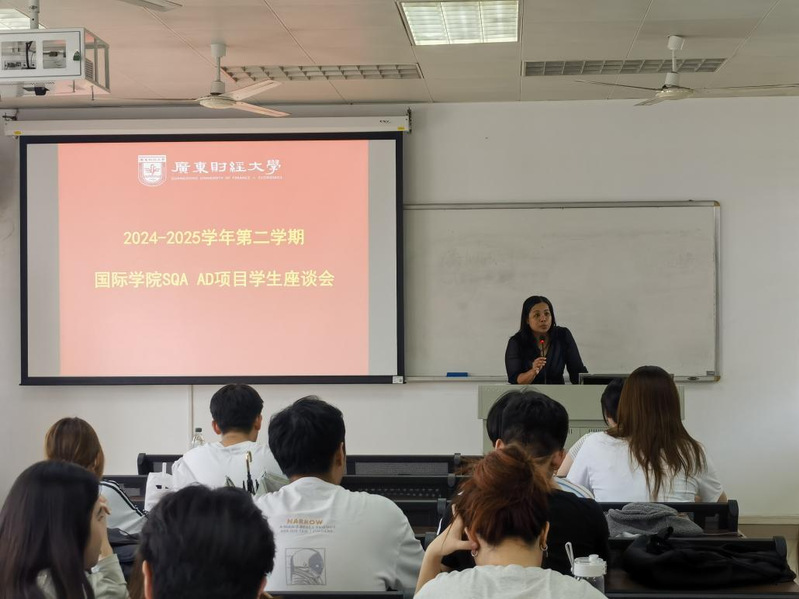 6月10日中午,taptap点点体育国际本科SQA AD项目在善学楼404教室召开2024-2025学年第二学期学生教学座谈会。taptap点点体育副院长兼SQA AD项目协调员韦娟、国际本科SQA AD中心副主任施柳锋、教学主任林骧、语言课负责人黄嘉良、专业课负责人周阳、教务与学工老师等工作人员以及各班级学生代表参加本次座谈会。会议由施柳锋主持。
